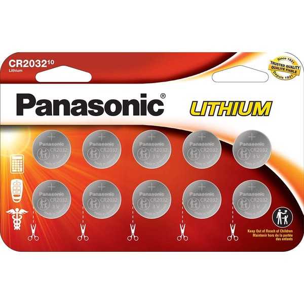 Panasonic CR2032 3.0 Volt Long Lasting Lithium Coin Cell Batteries in Child Resistant, Standards Based Packaging, 10 Pack