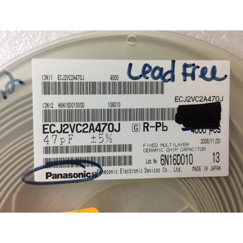 Panasonic ECJ-2VC2A470J PANASONIC CAP CER 47PF 100V C0G/NP0 0805 SMD ROHS 40 ...