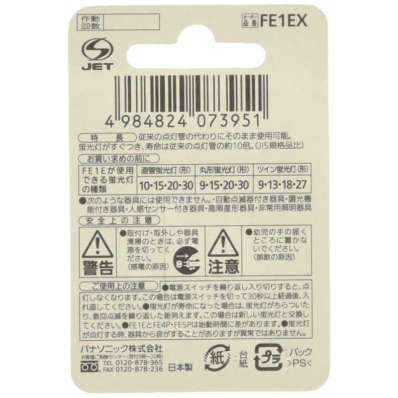 Panasonic Electronic Light Up Tube E Shape Base fe1ex
