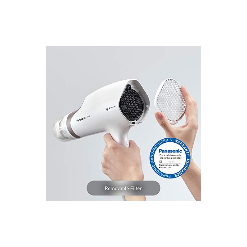 Panasonic Nanoe Salon Hair Dryer with Oscillating QuickDry Nozzle, Diffuser and Concentrator Attachments, 3 Speed Heat Settings for Easy Styling and Healthy Hair - EH-NA67-W (White)