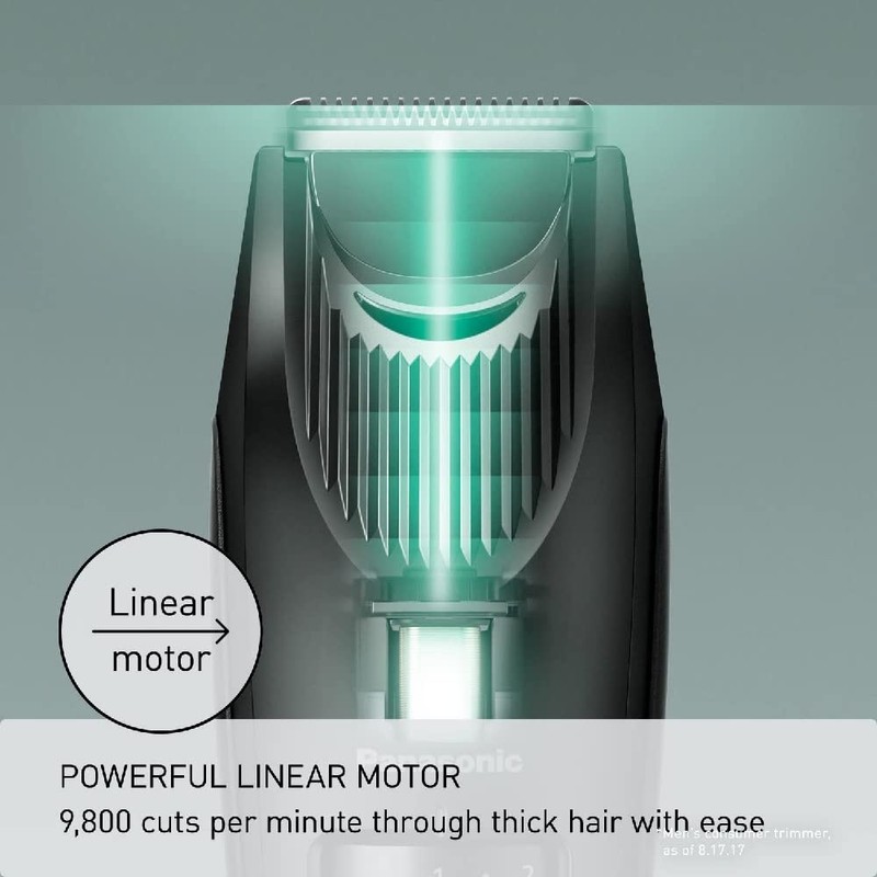 - High-performance motor with a linear drive: This Panasonic trimmer is equipped with a linear motor which delivers 9,800 cuts per minute and maintains peak power up to the end of every battery charge