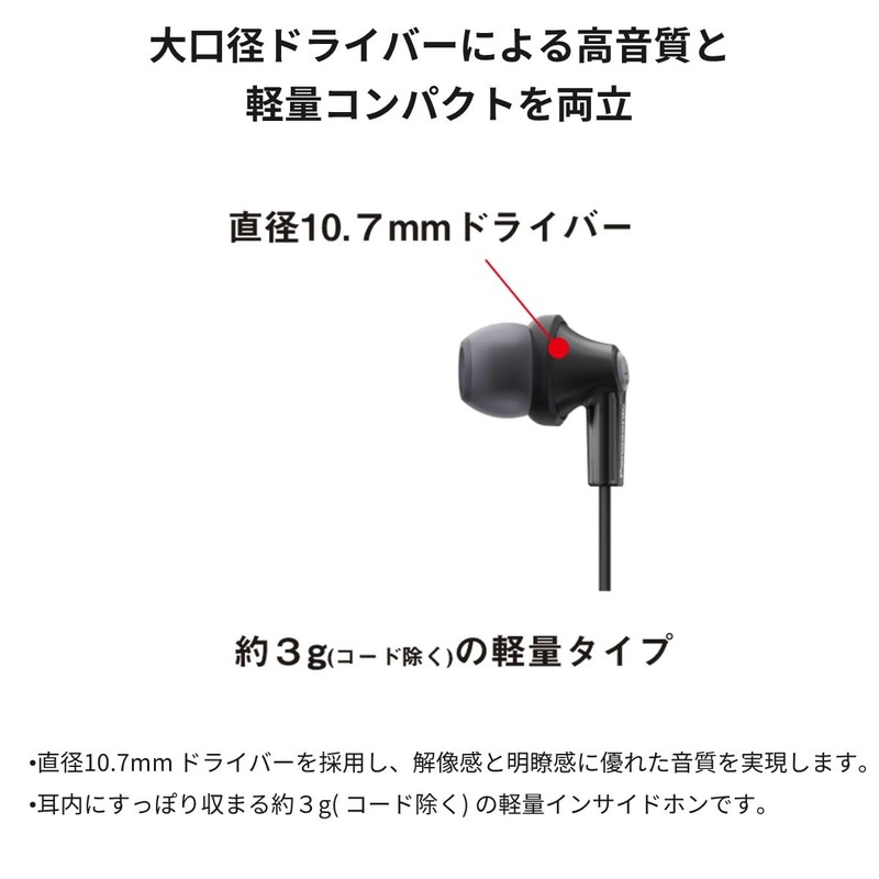 - The large diameter driver combines high sound quality and a lightweight compact size
