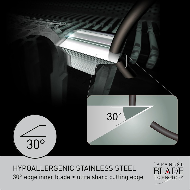 * **The perfect 30° edge** * Quick, easy installation * **Hypoallergenic blades for sensitive skin** * Height: 2" * Width: 2" * Depth: 2" * Weight: 1LB * **Replaces Panasonic WES9066**