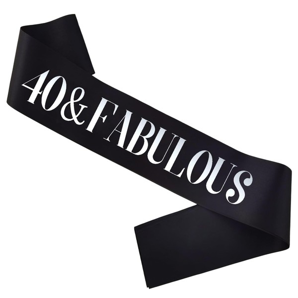 PANBINN 40 & Fabulous Birthday Sash, Silver Foil Black Satin '40 & Fabulous' Birthday Sash for Men or Women 40th Birthday Party Decorations Gifts Favors