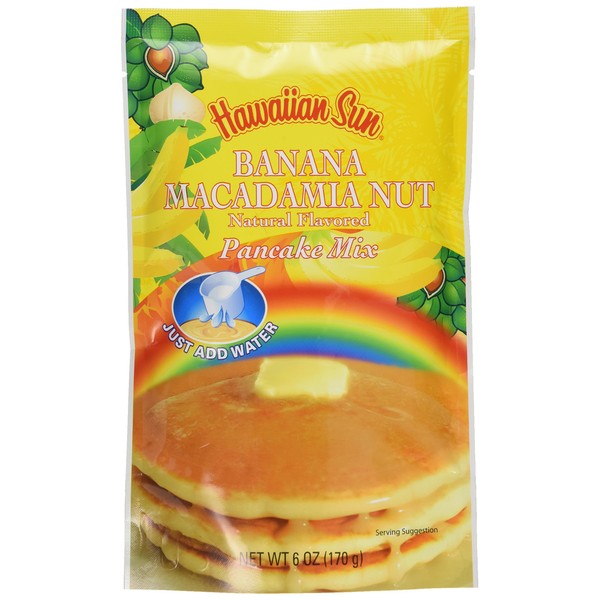Pancake Mix, 6 Ounce Bag by Hawaiian Sun (Banana Macadamia Nut, 12 Packs)