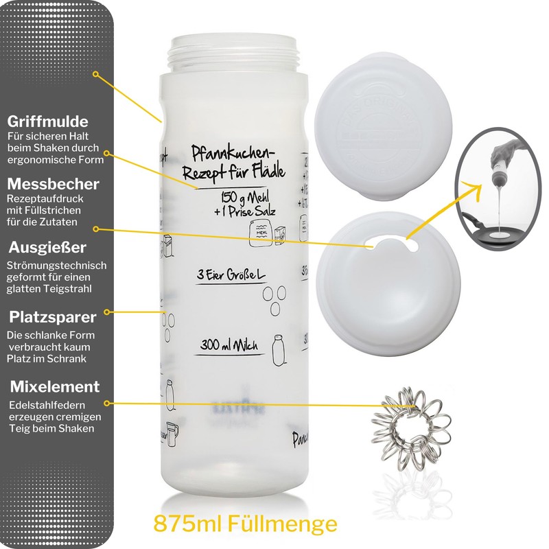- With a foaming balls, smoother dough types quickly Klumpenfrei and creamy to shake