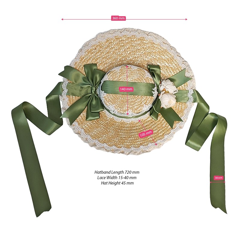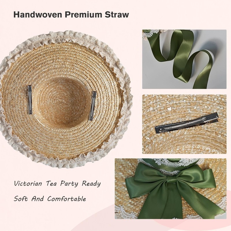 Panchitalk Women Victorian Tea Party Sun Hat, Lolita Bows Flower Ribbon Flat Straw Hat Summer Beach Bonnet Cap for Travel Holiday(Green)