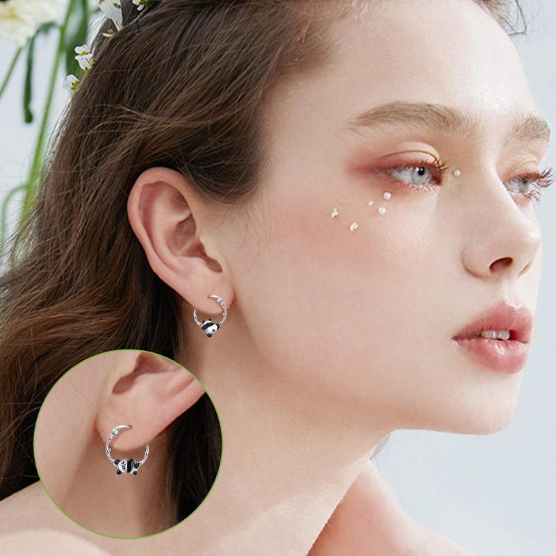 Panda Earrings 925 Sterling Silver Panda Hoop Earrings Animal Jewellery for Women Mom