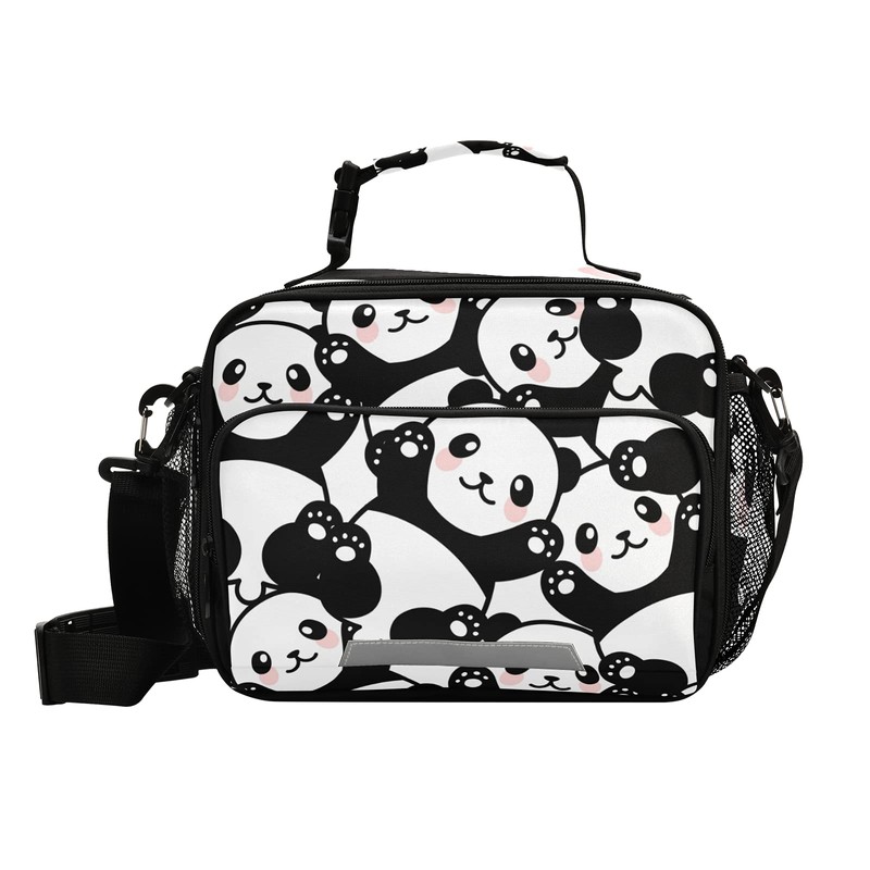 - HANDS-FREE: Leakproof Insulated Lunch Tote Bag with Adjustable & Removable Shoulder Strap. Which makes it can be carried by hand or slung on its side. The girls panda lunch box soft strong handle is comfortable for your hands. Heavy-duty metal zippers smoothly open and close, and will not be stuck in the lunchbox edge.