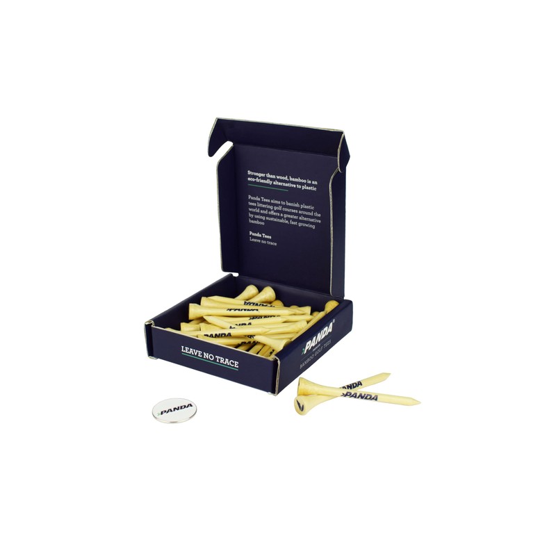 Panda Premium Bamboo Golf Tees - 70mm | Quantity 30 | Complete with ball marker