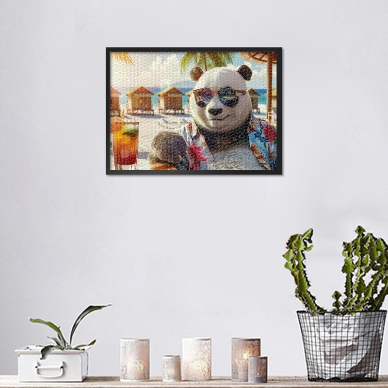 Panda Puzzles for Adults Panda Relaxing at Beachfront Bar Jigsaw Puzzles 1000 Pieces for Adults Difficult Challenging Puzzle as Gifts Perfect for Family Friends Party 27.5"X19.7"