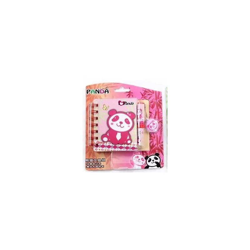 Panda Spiral Notebook and Pen Set - Pink
