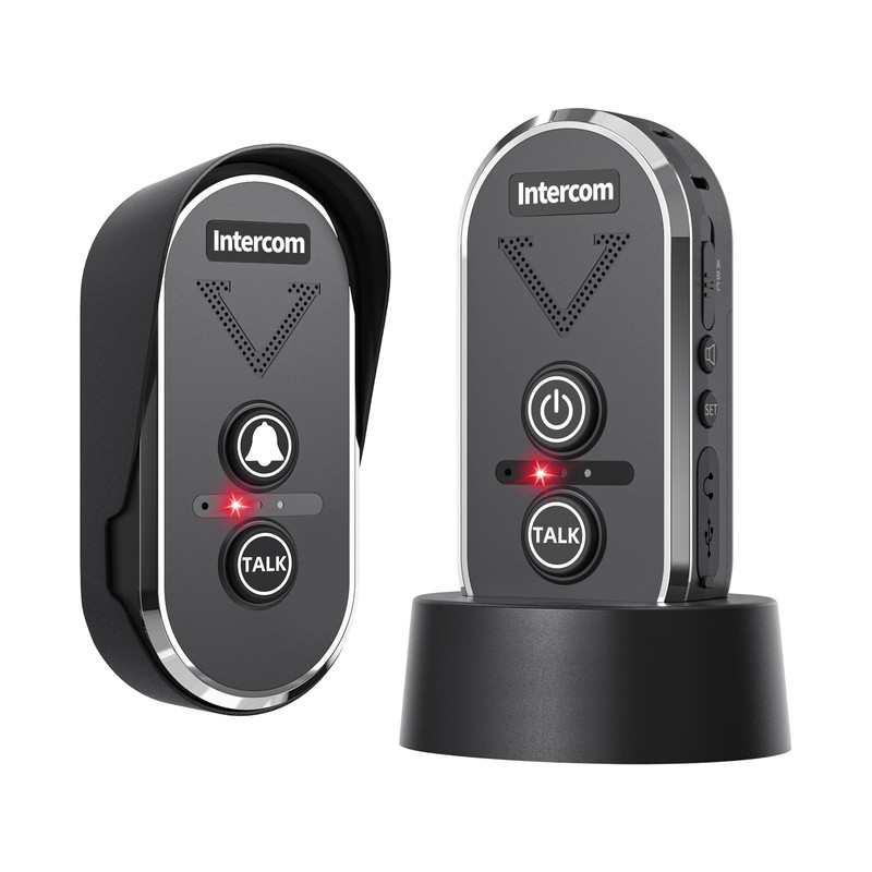 - EASY TO USE:This intercom doorbell system does not require Wi-Fi, Bluetooth or pairing with a mobile phone,only one button push to talk.It takes a 3 second power button push to turn them on or off.