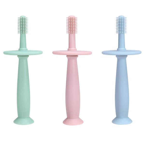 PandaEar 3 Pack Silicone Baby Toothbrush Teethers - Teething Toys Training Oral Care for Infants 0-12 Months+