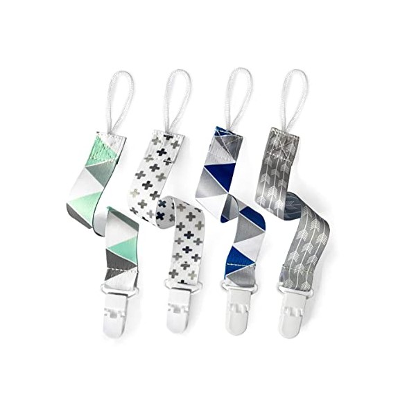 PandaEar Dummy Clips Baby Soother Chain Pacifier Clips Solid Color| 4 Pack Universal Holder Leash Soother Clips with Plastic Clasp for all Baby Teething Toys Teethers Soothers