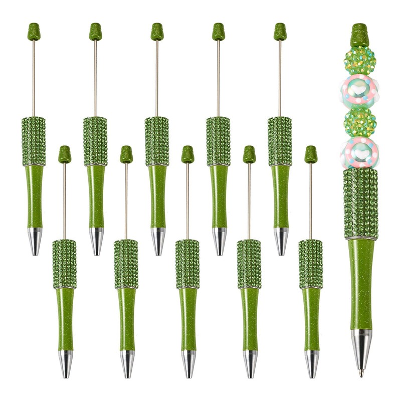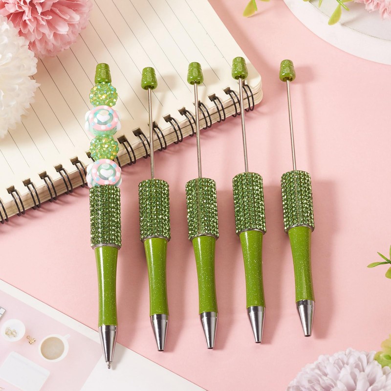 Pandahall 10Pcs Olive Drab Beadable Pens Plastic Bead Ballpoint Pens Bulk Bling Diamond Beadable Pens Colored DIY Pens for Students Writing School Office Supplies