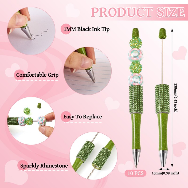- Size and Quantity: Designed with the perfect size in mind, these beaded ballpoint pens measure about 5.43 x 0.39 inches/13.8 x 1.0 cm. They fit comfortably in your hand, providing a smooth and enjoyable writing experience. This package contains 10pcs olive drab diamond beadable pens, ensuring a long-lasting supply for all your writing needs.