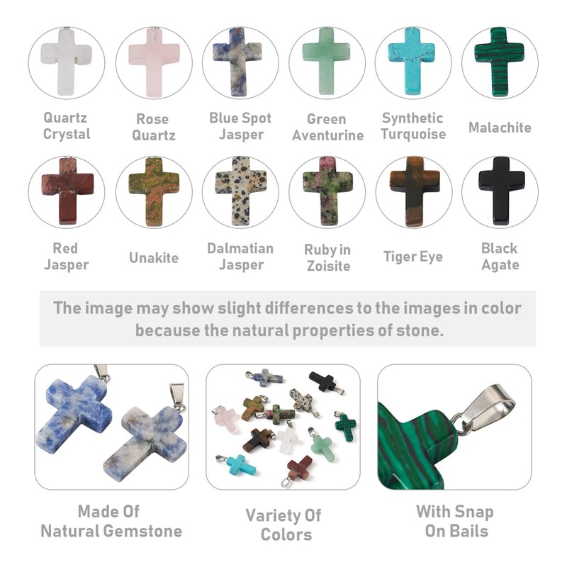 - Material: These cross pendants are made of natural & synthetic gemstone, they are with smooth surface , sturdy, durable for your long time use.