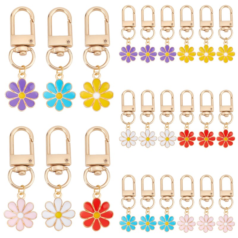 PandaHall 24pcs Flower Key Chain, Daisy Enamel Pendant, Aesthetic Key Ring, Car Key Ring for Handbag, Bag, Headphone Case, Decoration, Purse Accessories, multicoloured
