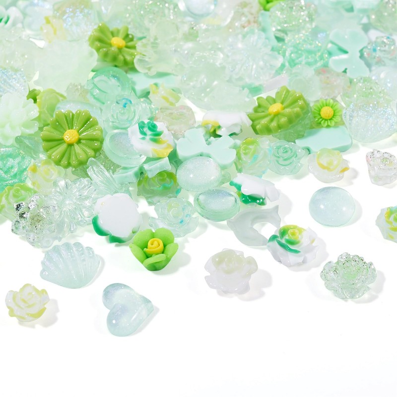 PandaHall 30g Flower Resin Cabochons Charms Green Luminous Heart Butterfly Bowknot Dome Flatback Cabochons for Nail Art Decoration Scrapbooking Embellishment
