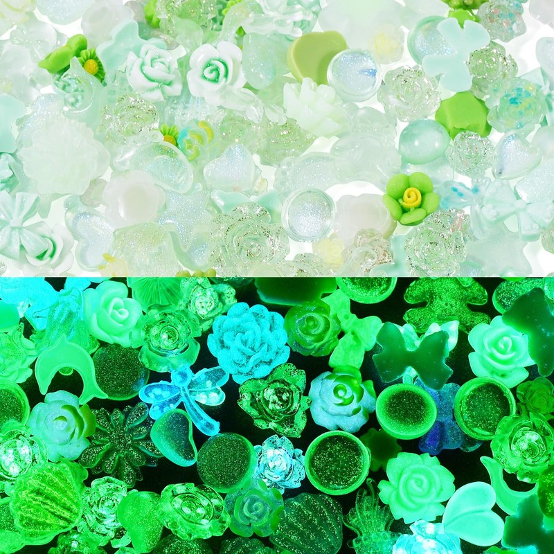 - Design: These stunning cabochons feature a unique glow-in-the-dark effect, adding a touch of enchantment to your crafts. The mixed shapes, including flowers, butterfly, bowknot, heart, dome cabochons, create a diverse and eye-catching assortment.