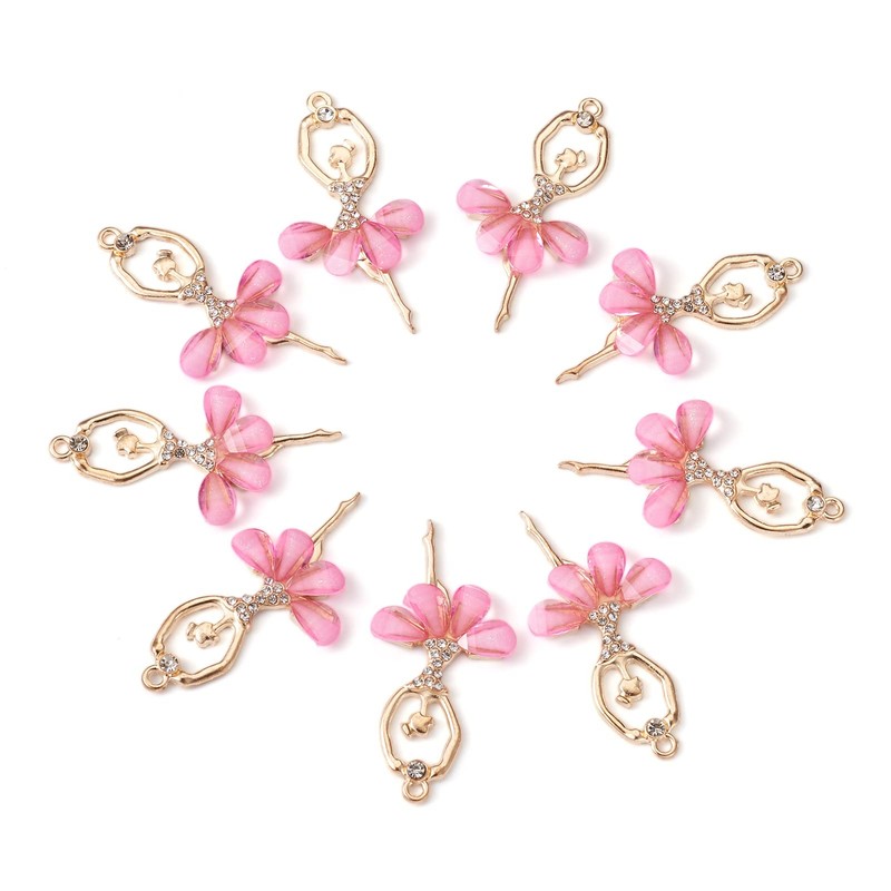 PandaHall Crystal Ballerina Alloy Ballet Dancer Charms with Resin Rhinestone for DIY Bracelet Necklace Keychain Resin and Rhinestone, Resin and rhinestones