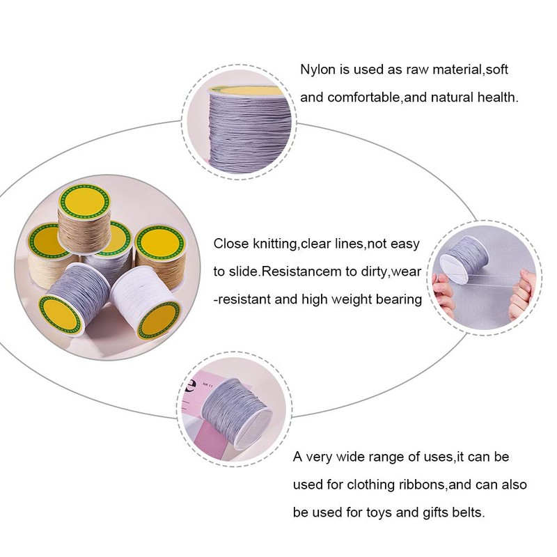 Pandahall Elite 6 Rolls 100 Yard/Roll 0.8 mm Nylon Beading String Knot Cable Chinese Knot Cord Nylon Macrame Thread Beading Cord, 6 Mixed Colours