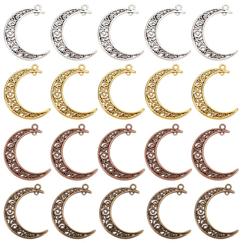 • 4 colors available: pack includes 40 pieces Tibetan alloy moon shape pendants in 4 colors - antique bronze, antique gold, antique silver and red copper; each color 10 pieces; can meet your different needs in DIY craft making project
