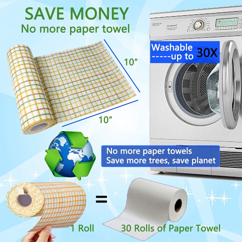 • √SAVE MONEY - A single roll is like buying paper towels bulk. These unpaper towels will last longer. The come on a roll so place on your paper towel holder.