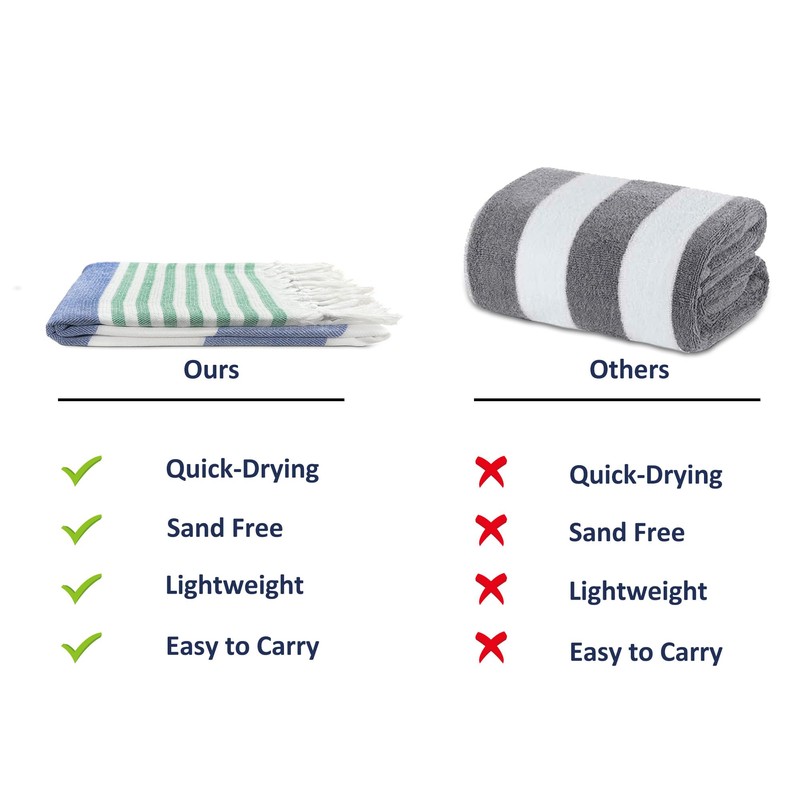 - 【Quick Drying】:Our beach towels are woven. They are thinner and will dry 50% faster than standard terry towels. Their quick-drying feature allows you to never smell dampness!