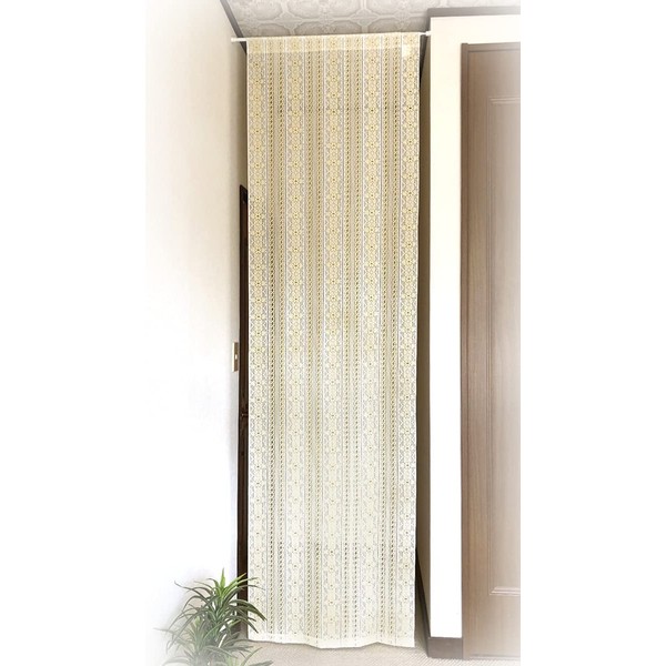 - It is 27.2 inches (69 cm) wide and fits neatly inside a western door. The long length of 94.5 inches (240 cm) can cover from ceiling to floor. Useful as a room divider for living rooms, kitchens, stairs, doors, entryways, hallways, etc. When not in use with accordion type fabric, tassels, ribbons and clips can be bundled up to 2.0 inches (5 cm) and will not get in the way of passing through. It is also convenient for ventilation, and it also serves as a virus. (The top part is for the pole loop type as shown in the picture. )