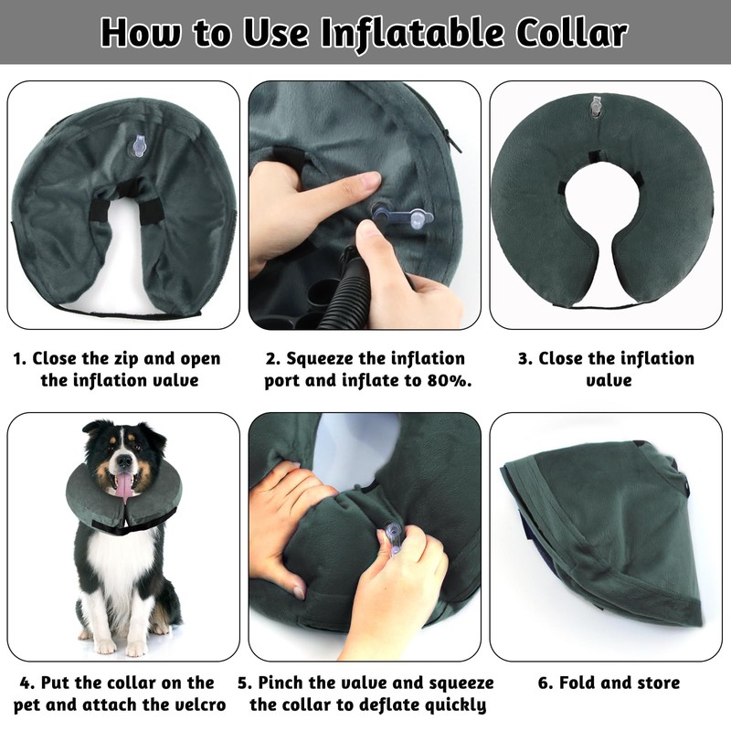 - Inflatable dog collar is easy to inflate and store, perfect for use at home or on the go.