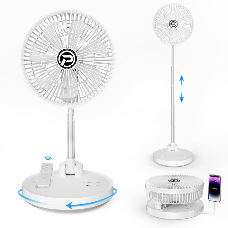 PANERGY 10” Portable Fan 20000mAh Battery Operated Rechargeable, Auto-Oscillating Pedestal Fan with Remote,4 Speeds, Quiet, Cordless Foldable Telescopic Fan for Travel, Bedroom, Home, Office