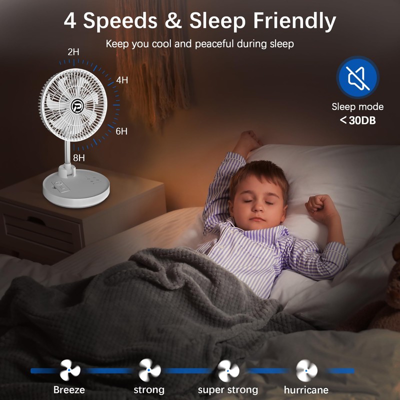 - 【4 Speeds & Sleep Friendly】Features 4 adjustable Speeds and 4 Timers Energy-saving settings, the desktop fan easily meets your different needs for coolness. It runs quietly, only 30db white noise, and the unique sleep mode(turn off all lights) ensures peaceful sleep. Great gift for husband, wife, daughter, friends.