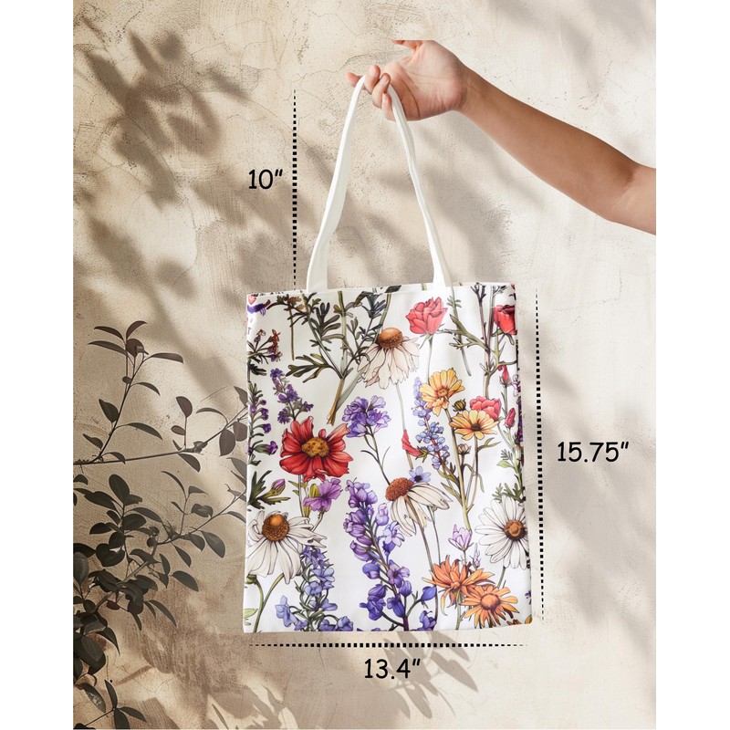 Panfurco Aesthetic Canvas Tote Bag for Women, Cotton reusable shopping bags with Inner Pocket (07 Full Flower)