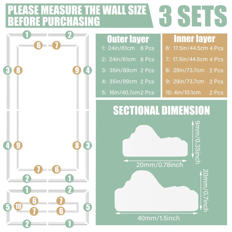 - Package Includes: this package includes 3 sets of pre-cut wall decorations; The double-layer designs give you the freedom to mix and match to add variety to you space