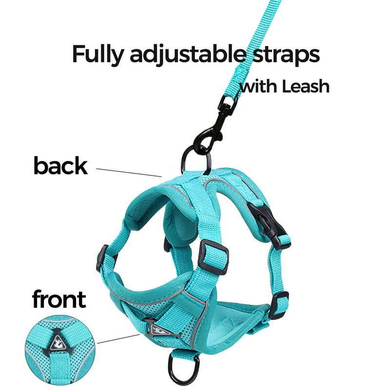 pangdi Cat Harness and Leash Set Escape Proof Tactical Medium Kitten Harness Emotional Support Cat Vest, Turquoise, M