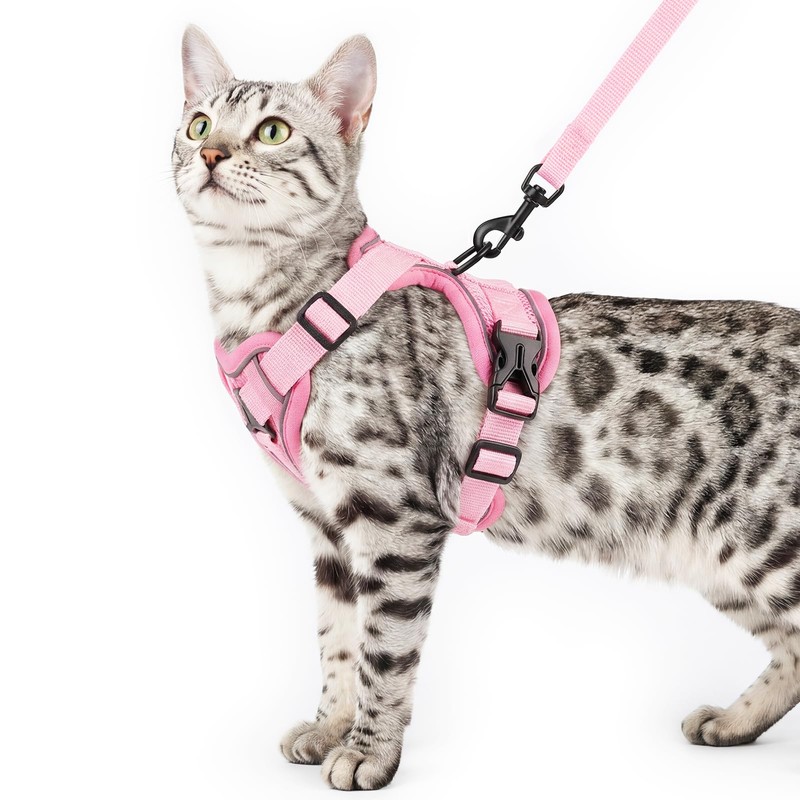 As explorers ourselves, we value wanderlust. But not without responsibility. So our cat harness prioritizes security with a dual-measure design using both velcro and buckles. The breathable mesh keeps cats comfy while the bright reflective strip improves night visibility for uninterrupted adventures after dusk.