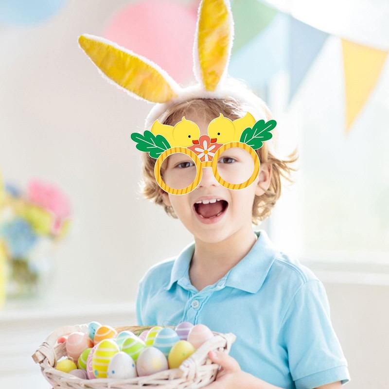PANGHUBO Easter Party Cosplay Novelty Design No Glasses Kids Party Dress Up Cute Bunny Chick Easter Egg Glasses Frame Party Favors for Kids 8-12 Goodie Bags (B, A)