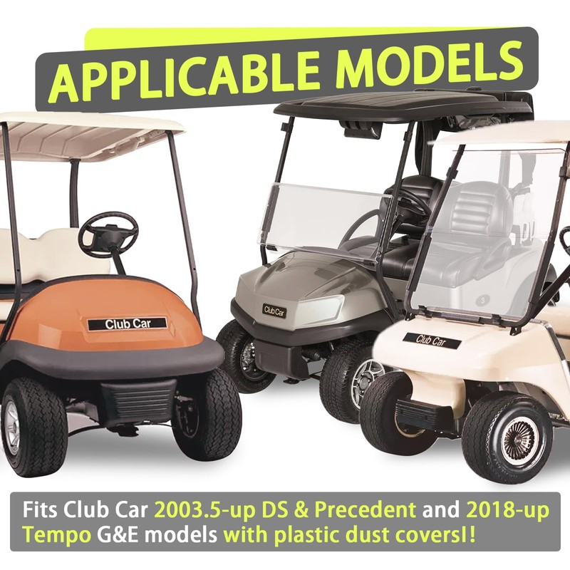 • Club Car Models: Suitable for Club Car 2003.5-up DS&Precedent and 2018-up Tempo gas or electric models with plastic dust covers. ( Doesn't fit DS model with metal dust covers!)