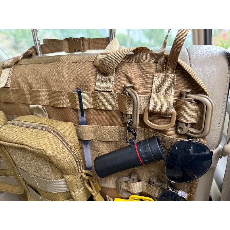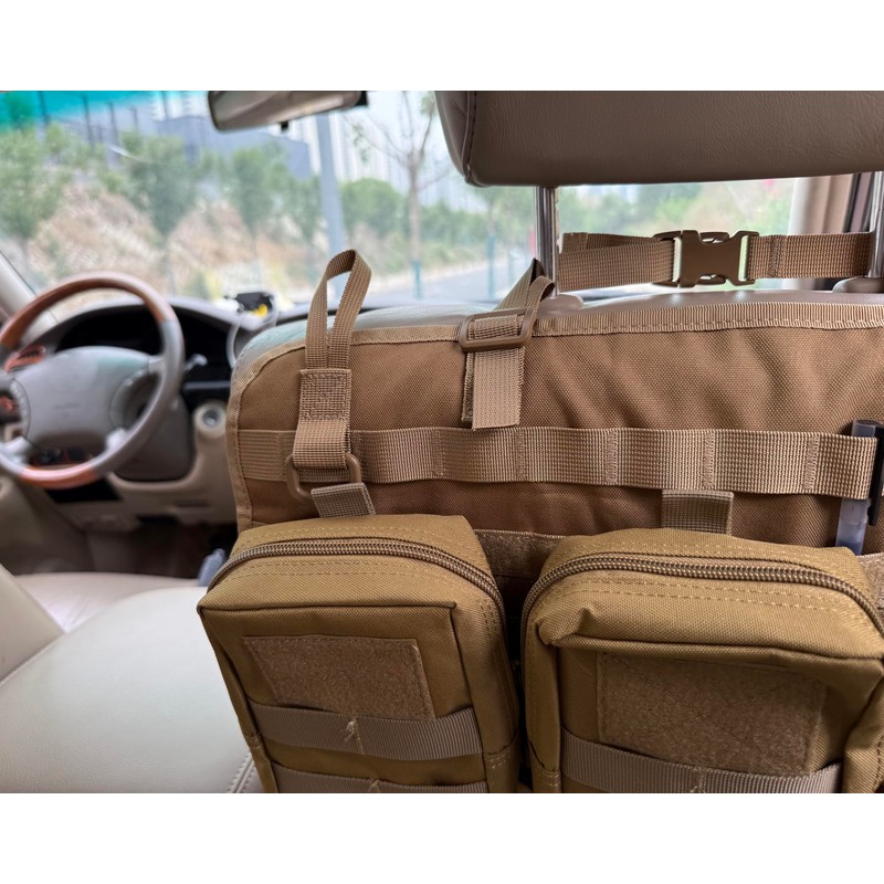 - Molle system: versatile car backrest organiser with robust Molle system for individual attachment of equipment and accessories, for military outdoor use for camping and leisure