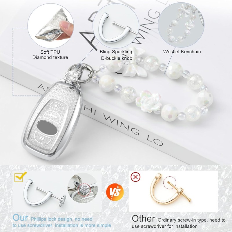Pangpai Key Fob Cover for Subaru Ascent BRZ Crosstrek Forester Impreza Legacy Outback WRX STI Smart Key TPU Keys Case Shell Protector with Keychain Lanyard Women Cute