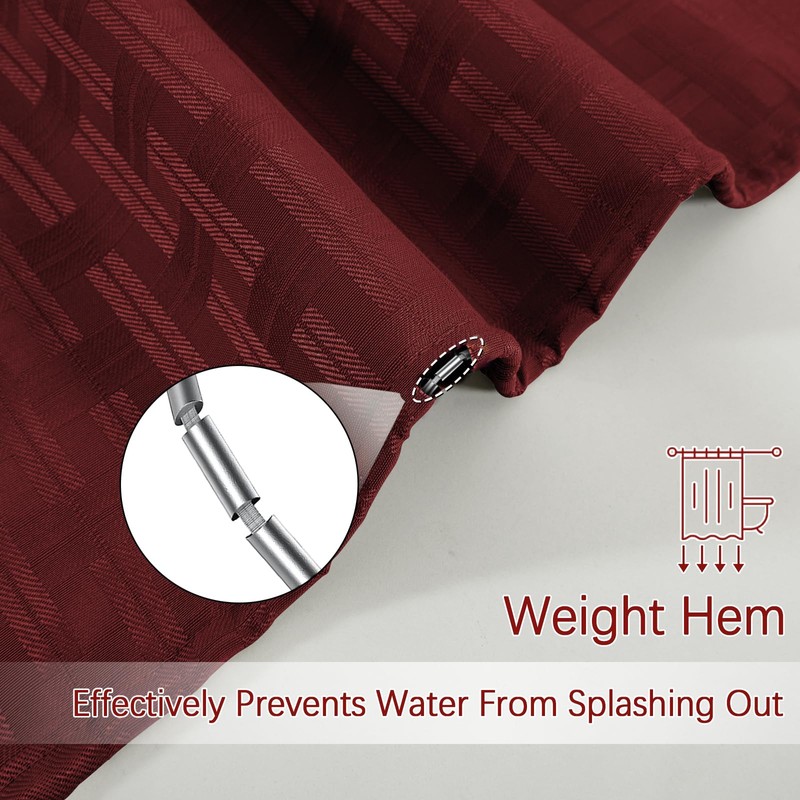 PANGSINNE Elegant Burgundy Fabric Shower Curtain - Heavy Duty Cloth Curtains for Bathroom, 230GSM Hotel Spa Luxury Weighted Polyester Bath Curtain Set with 12 Hooks 72Wx72H