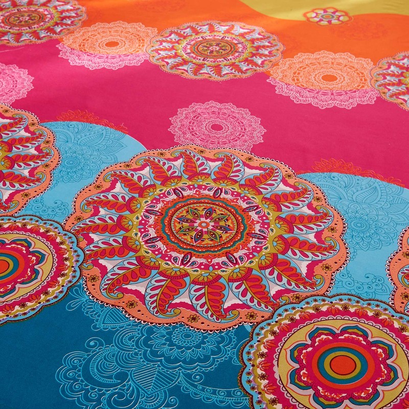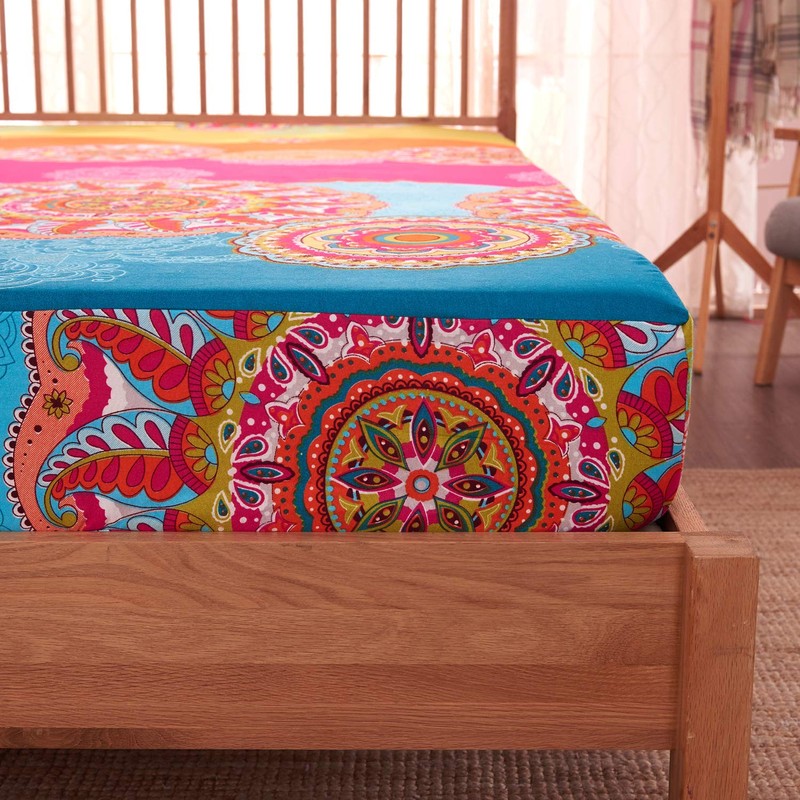Pangzi Bohemian Retro Bedding Sheet Set,1 Fitted Sheet, 1 Flat, 2 Pillow Cases - 4 Piece (King, Rose Pink)