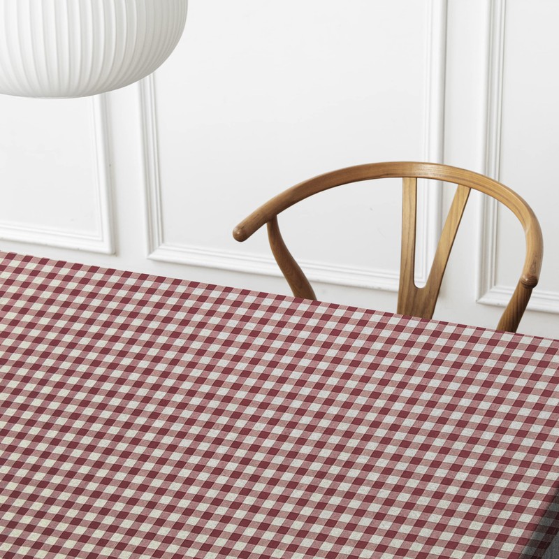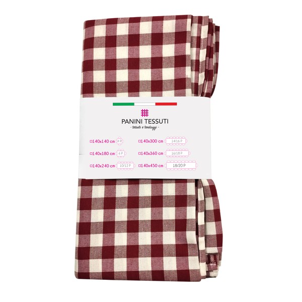 - Beautiful tablecloth with checked pattern dyed in Bordeaux yarn, available in cotton blend. Ideal for decorating your home is sturdy and medium weight. The signature Panini fabrics protect your table from scratches and dirt and give it a vibrant and colourful touch.