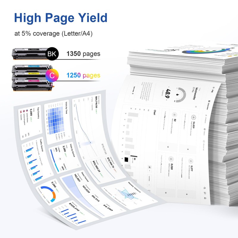 - High Page Yield: Up to 1,300 pages per 218A black toner cartridge and 1,200 pages per 218A color toner cartridge (Letter/A4, at 5% coverage)