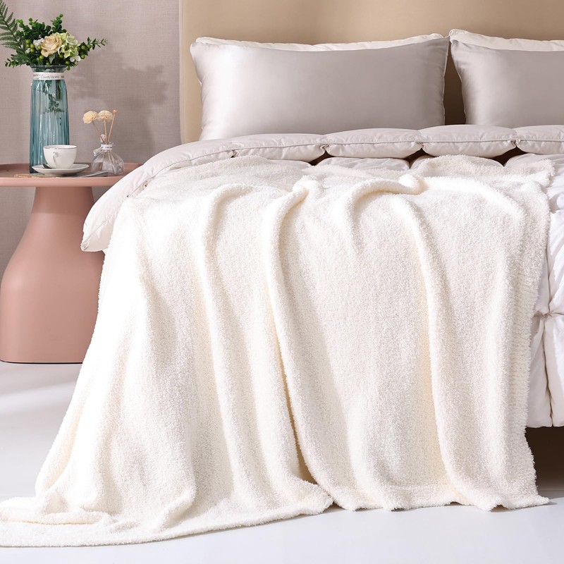 - Solid Cream Soft Throw Blanket: This soft blanket is made of super cozy yarn in fuzzy knitted texture for an eye-catching look.