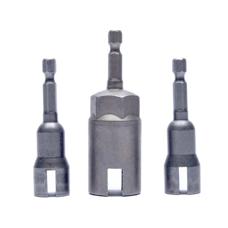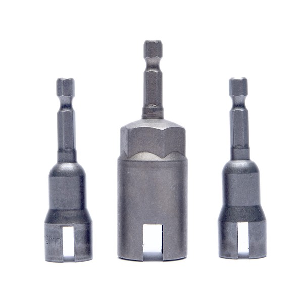 - SPECIFICATIONS:3 Pack 2 Size 1/4" Shank fits most powered corded or cordless drills, Hexagon socket size:: 12mm, 19mm,2 sizes,2types Slot cutout is 4mm (0.15 inch), 7mm (0.27 inch)