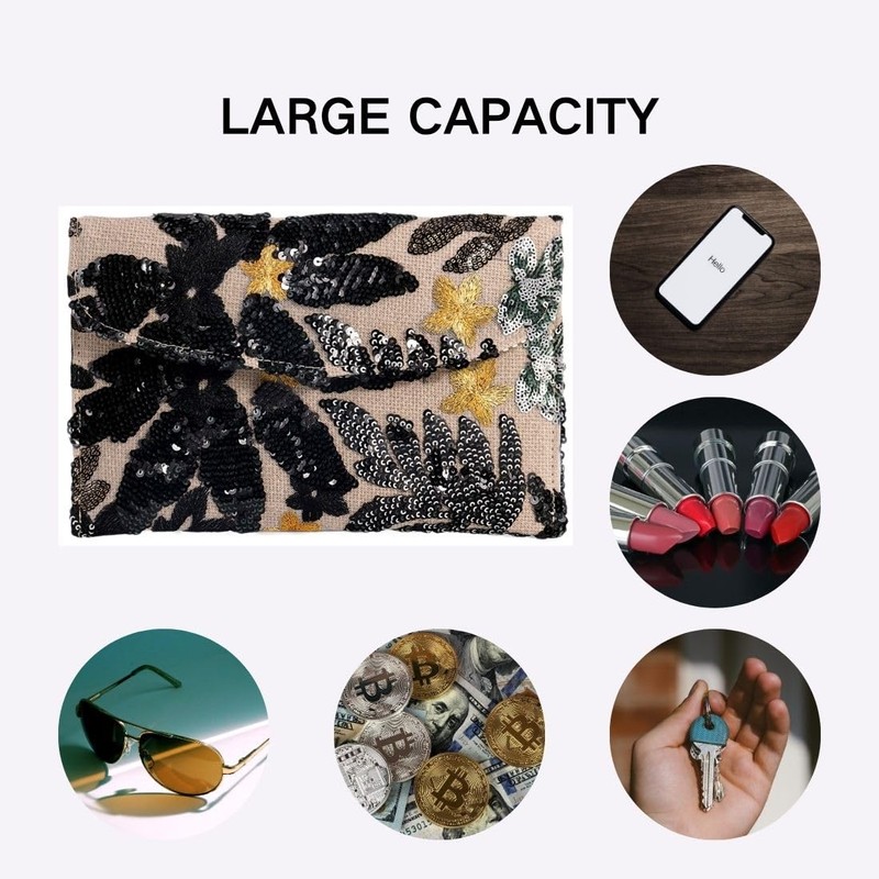 - Exquisite details:Sequin beaded embroidered floral design and reinforced stitching elevate this women's beaded clutch to a timeless accessory. A fitted lining adds dimension to this clutch.