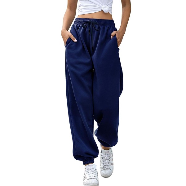 Pantalones deportivos para mujer, con bolsillos y cintura alta, para gimnasio, ajuste atlético, pantalones deportivos, Azul marino, XS